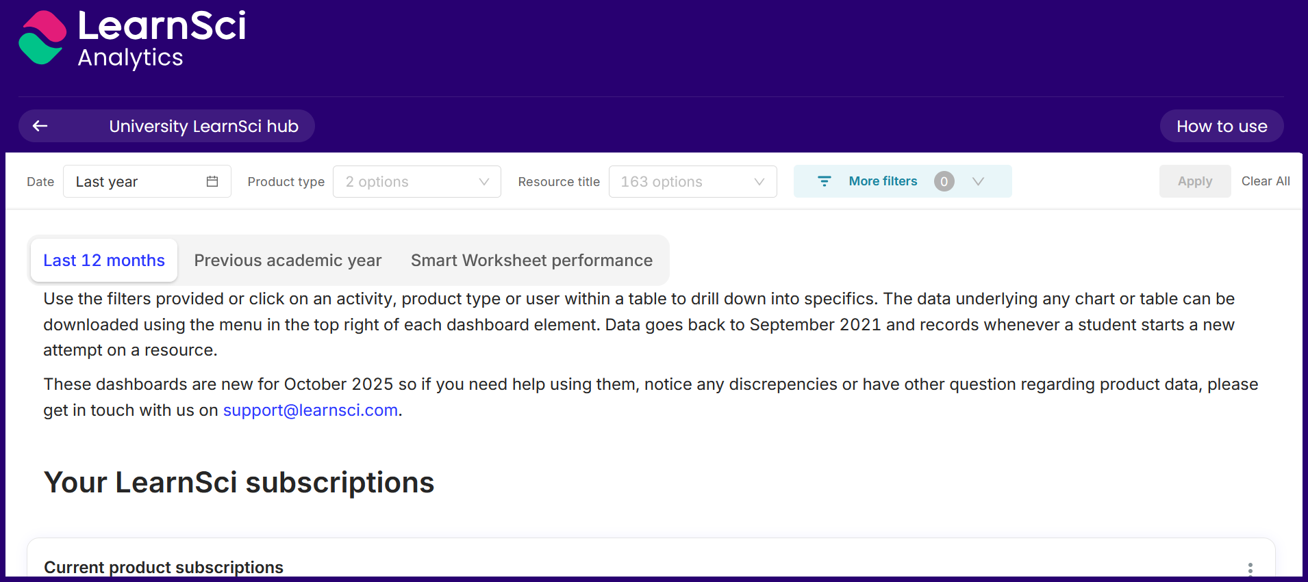Your LearnSci Hub is available to access, and it contains: Announcements and latest news from LearnSci Information about your LearnSci subscriptions Community information and updates Skills & competencies information Usage reports for your LearnSci ...