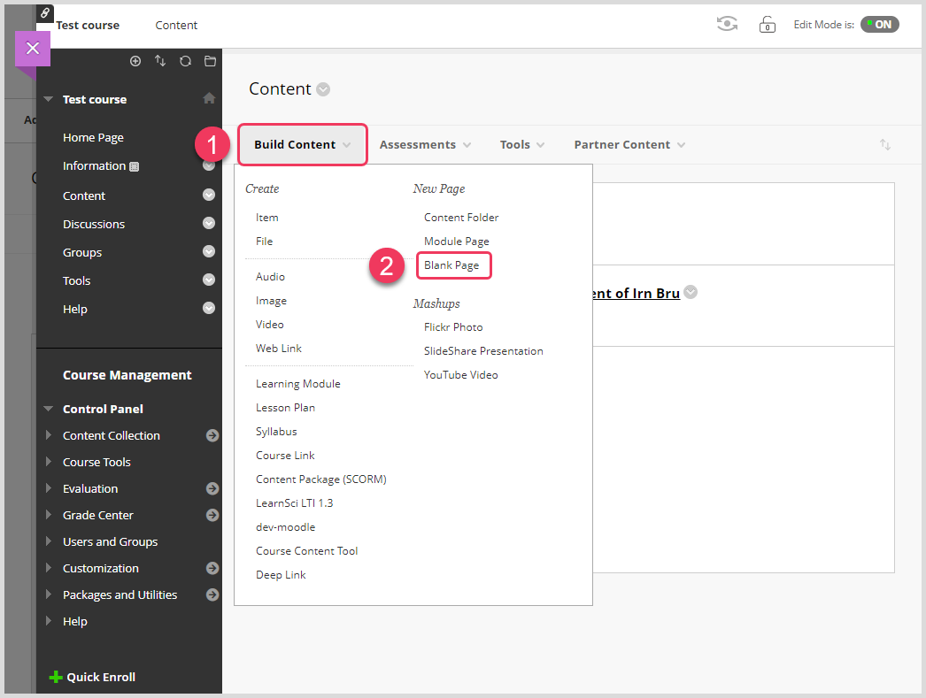 1. In your Blackboard course, select Build Content