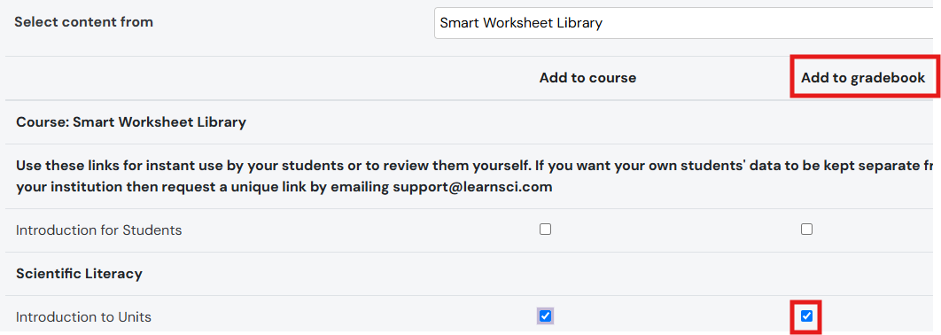 - If you would like the student grades for the LearnSci LabSim or Smart Worksheet to appear in a new column in your Sakai gradebook you need to request this by contacting support@learnsci.com. We will provide you with a custom assessment for this which you will then be able to add to your course(s) using the guidance below.