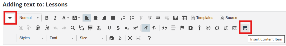 8. To test, go to a course and add a text item under ‘lessons’ with a teacher account, then click ‘select content’.